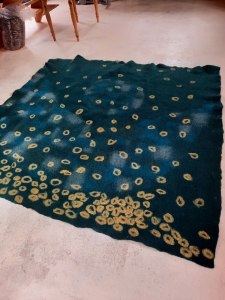 Annelies heeft ongeveer 10 jaar geleden een omslag gemaakt op creatief gebied. Zij is zich gaan bezighouden met vilten. Dit is een arbeidsintensief en soms zwaar werk.
